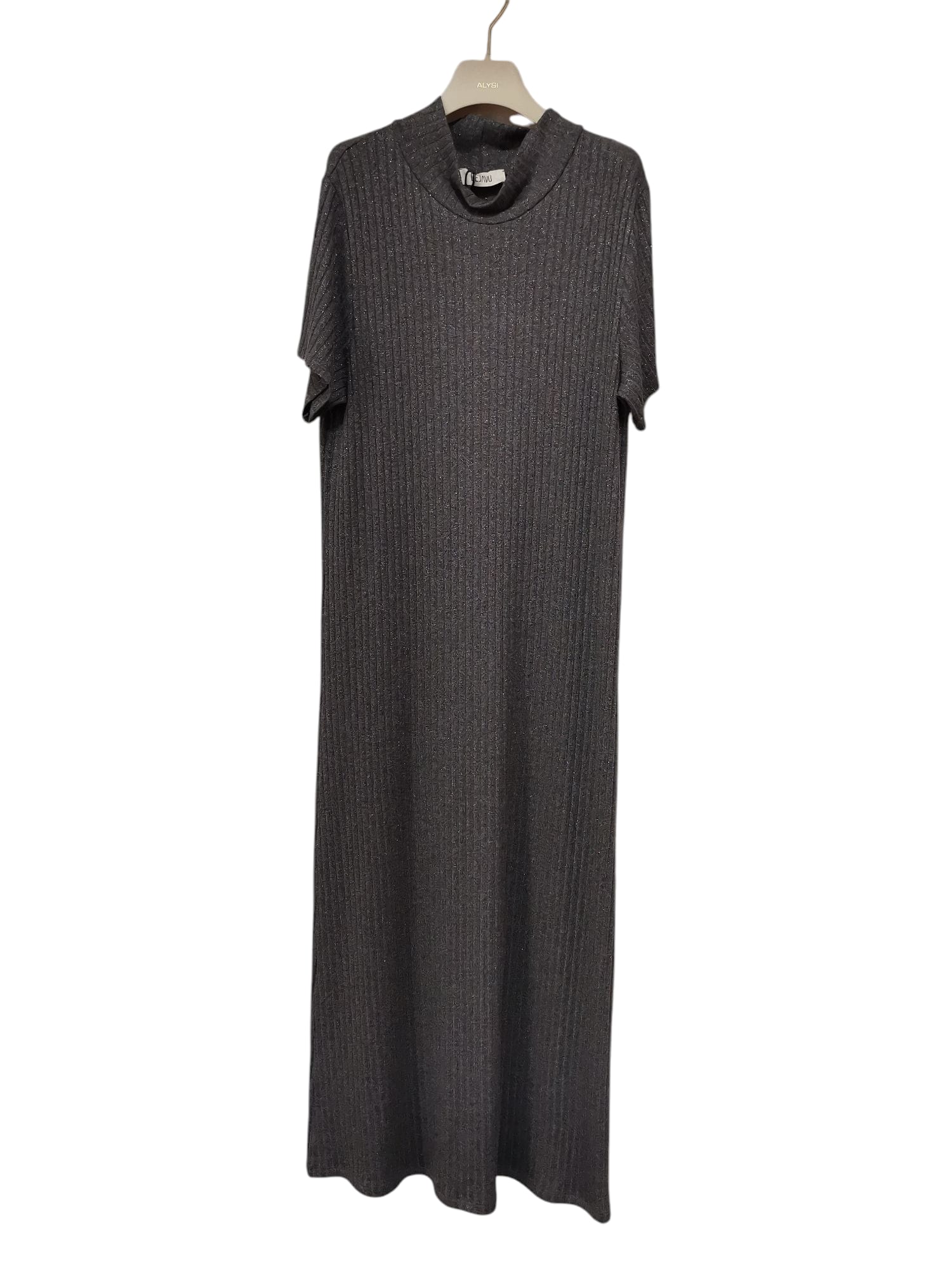 Abito lungo in lurex mezza manica . Vestibilità comoda. Mezzo collo.