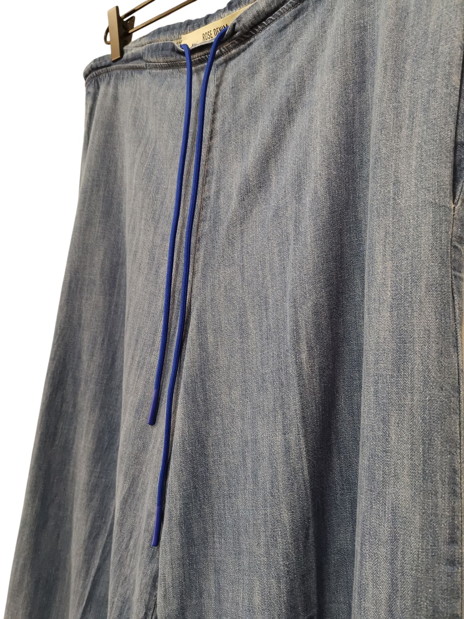 Pantalone palazzo in tela di jeans leggerissima. Coulisse in vita. tasche laterali.
